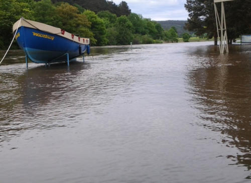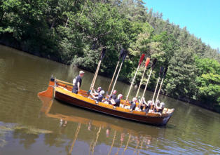 Unser Holzboot war mit einer kleiner selbstgebauten Takelage und einem Schild mit Papierblüten,