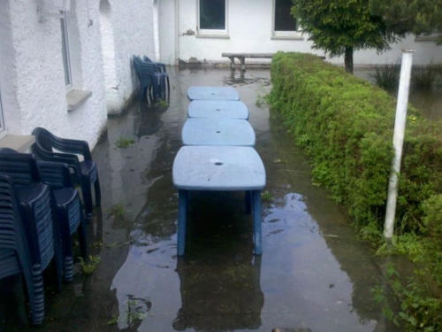 Unser Holzboot war mit einer kleiner selbstgebauten Takelage und einem Schild mit Papierblüten, ein toller Blickfang