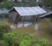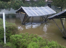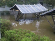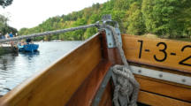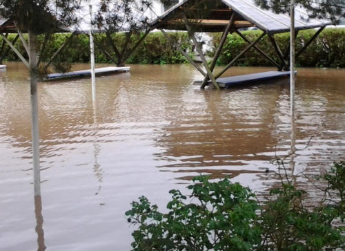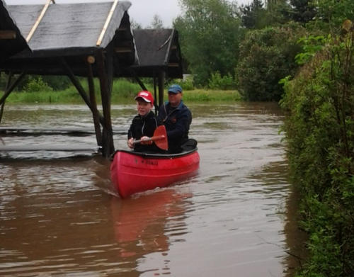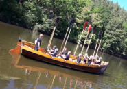 Unser Holzboot war mit einer kleiner selbstgebauten Takelage und einem Schild mit Papierblüten,