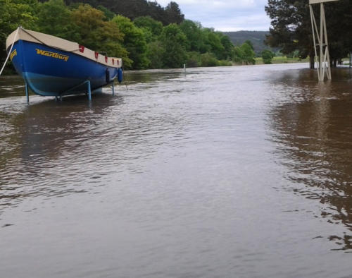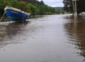 Unser Holzboot war mit einer kleiner selbstgebauten Takelage und einem Schild mit Papierblüten, ein toller Blickfang